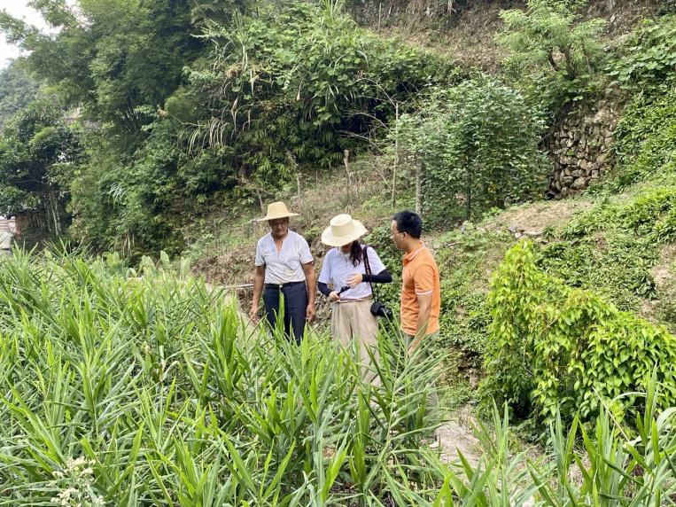 品尝美味后,李书记和农户带领队员们来到了种植生姜的农田进行观察,书记向队员们介绍了农户种植生姜的原因和近几年的收成状况,种植生姜带来的可观收入为农户的生活提供了保障和支持。