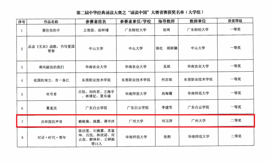赖峻燊、姚震及谭宇洋三名学子参演的作品《共和国的声音》在评选中脱颖而出,获评大学组二等奖 。