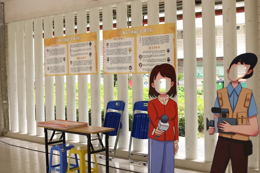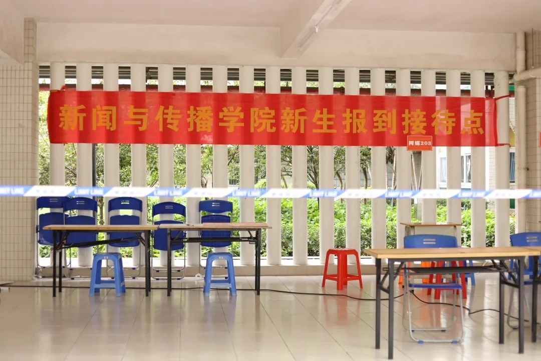 现场布置中,学生干部和志愿者们分工细致,精心准备。现场安排有桌椅以便于新生报到,一旁立有两个记者模样的照相板,充分展现彩票网站