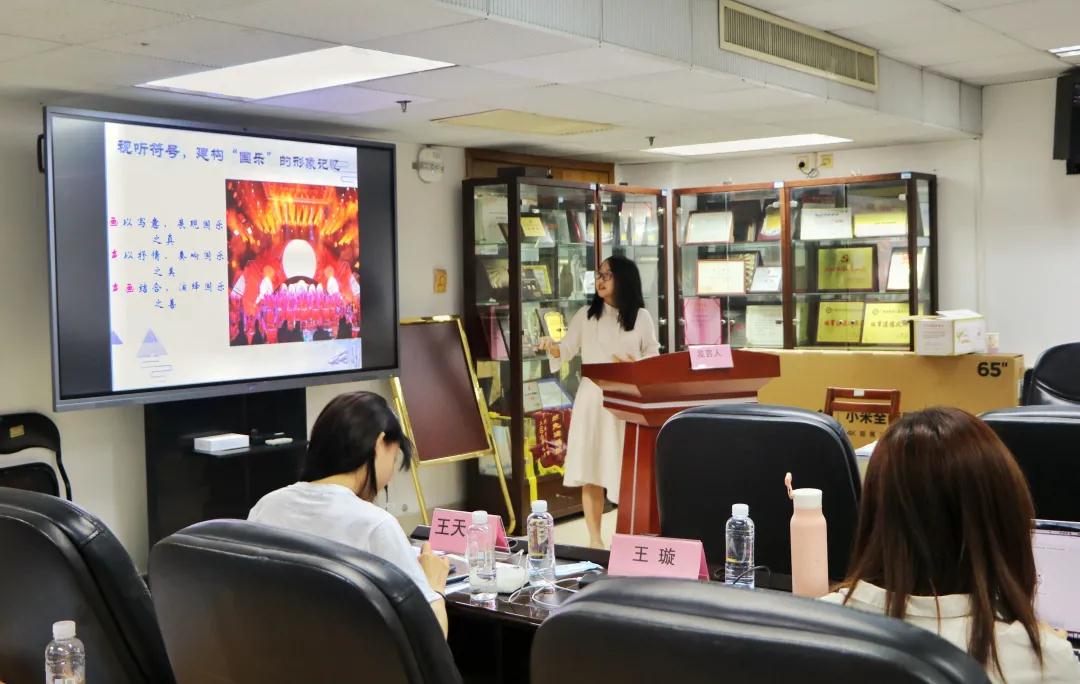 王璇同学以“广东卫视《国乐大典》对民族文化记忆的符号建构”为题展开演讲。她先借助学者观点解释概念,并指出现代化进程中“文化记忆”正在断裂和修复。她认为:电视是视觉时代的记忆媒介,视觉文化的基本涵义在于视觉因素,特别是影像因素占据了文化的主导地位。最后,她提出,大型文化类综艺节目是对文化记忆的符号建构,视听符号建构了“国乐”的形象记忆,仪式符号又建构“大典”的情景记忆,人物符号再建构了文化的情感记忆。