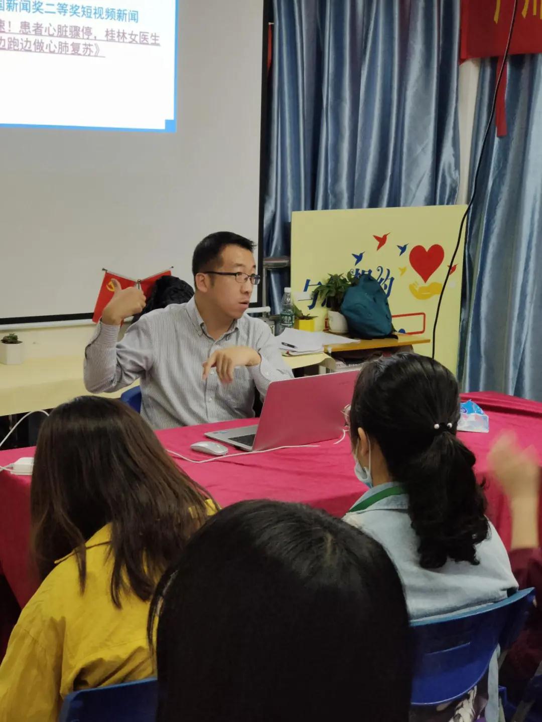 学院“与您相约”师生沙龙系列教育活动第十二期第二讲。李彦老师与学生们分享中国新闻奖获奖作品和播放一些优秀的自媒体视频,并且对它们进行分析、讨论,让学生们学习新闻视频制作和文章写作的技巧,从而达到教育和传播的目的。