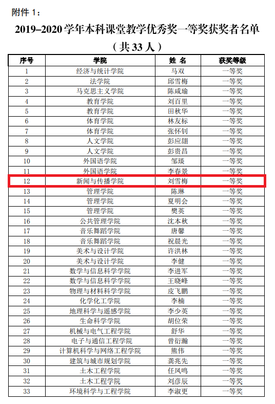 为提高我校教师的教学积极性,吸引更多优秀教师参与课堂教学,鼓励教师进行教学内容、方法和手段的改革,不断提高教学质量,根据《广州大学本科课堂教学优秀奖评选办法(2019 年修订稿)》规定,学校经各单位推选、学校审定及校内公示,共评定33位教师荣获本科课堂教学优秀奖一等奖,155位教师荣获本科课堂教学优秀奖二等奖。其中彩票网站
