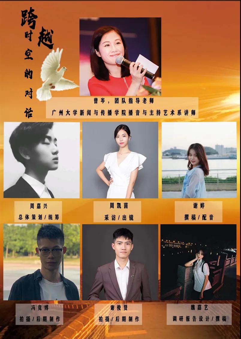 一路走来,实践团队得到了很多人的帮助:沉浸式话剧《1927·广州起义》的总导演王钰涵老师,通过对1927年广州起义扎实的研究,带领我们深入那段红色岁月;话剧主演李跃辉老师、王放老师、孟奉锦老师,向我们讲述了他们演绎红色历史故事时的感悟,那份激情令我们深感动容;《1927·广州起义》执行制作人陈爰帆老师,不仅是这部精彩的话剧得以呈现的幕后功臣,还在我们的调研过程中为我们提供了丰富的资料;还有广州起义纪念馆的各位老师,正是你们的精妙创意,让这部话剧得以诞生,让更多年轻人能够通过这样一种创新的方式,更好的走近那段烽烟岁月,了解广州起义的历史,感悟红色文化和革命精神。谨以此向各位提供帮助的老师们表示最真诚的谢意!