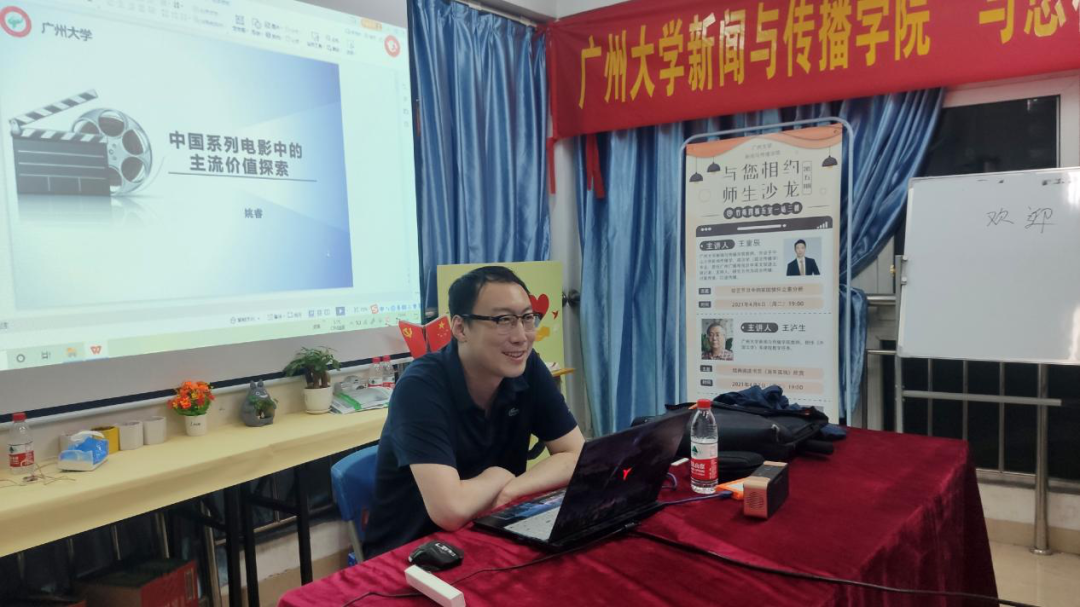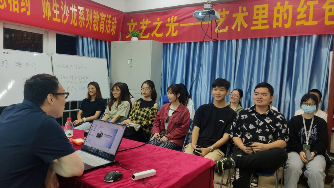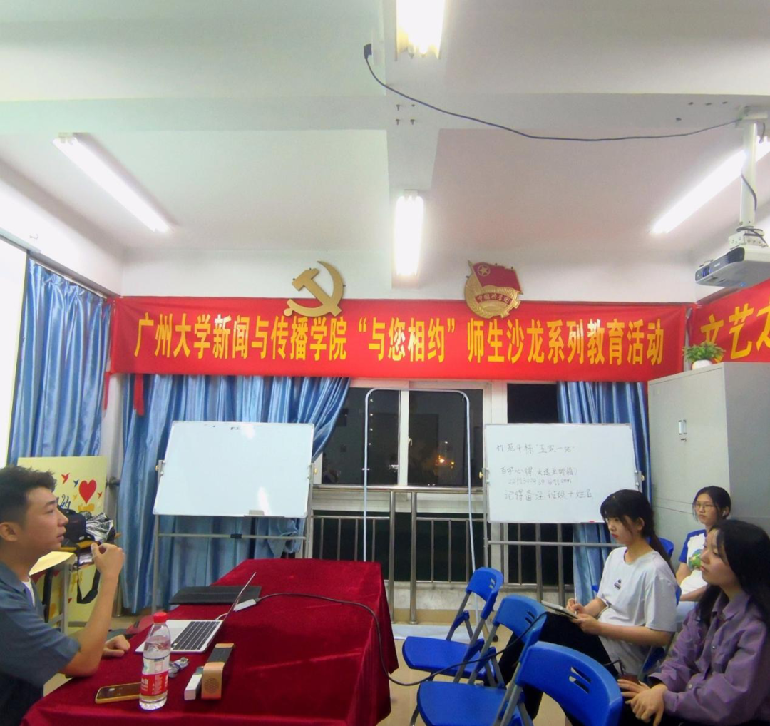 第五期“与您相约”师生沙龙系列教育活动在学生宿舍竹苑4栋五室一站开展。第五期师生沙龙分别由学院三位老师主讲,其中,王童辰老师主讲“综艺节目中的家国情怀立意分析”、王泸生老师主讲“经典阅读书目《百年孤独》欣赏”、姚睿老师主讲“中国系列电影中的主流价值探索”。
