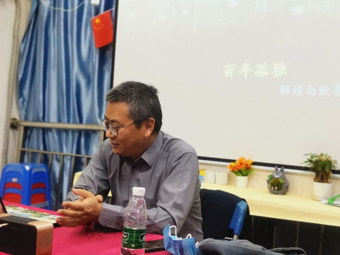 “与您相约”师生沙龙系列教育活动第五期第二讲。王泸生老师介绍拉丁美洲魔幻现实主义文学的代表作,被誉为“再现拉丁美洲历史社会图景的鸿篇巨著”的《百年孤独》。王老师从该书的作者、主题和主要人物出发仔细地介绍了这本书,并拓展介绍了中国当代较为杰出的现实主义作品。