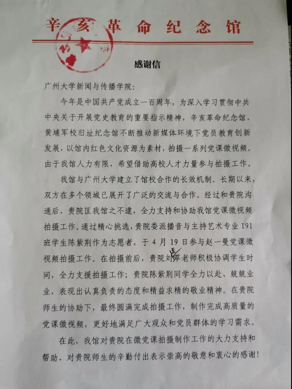 今年是中国共产党成立一百周年,为深入学习贯彻中共中央关于开展党史教育的重要指示精神,辛亥革命纪念馆、黄埔军校旧址纪念馆不断推进新媒体环境下党员教育创新发展,以馆内红色文化资源为素材,拍摄一系列党课微视频,并与广州大学建立了馆校合作的长效机制。