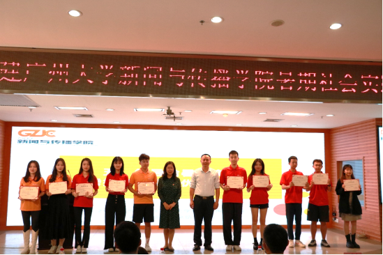 学校党委宣传部温志昌部长、学院田秋生院长为梅州实践队优秀学生颁发荣誉证书