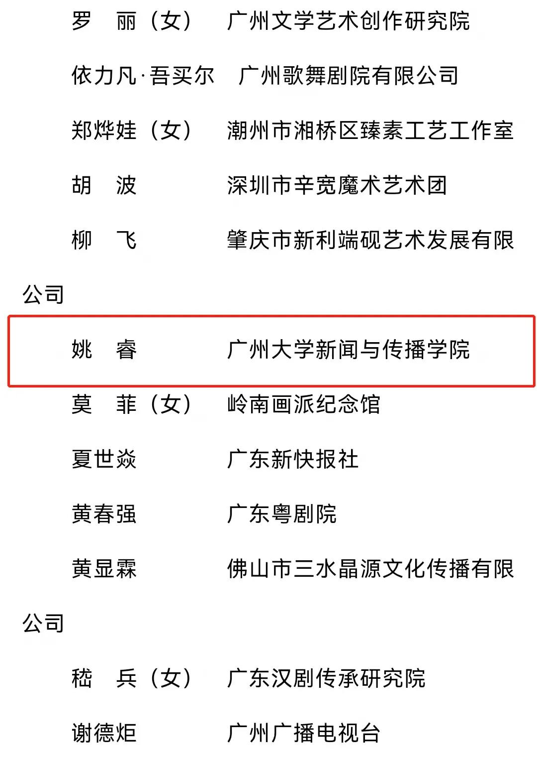 姚睿教授与多位青年文艺工作者被评选为为第十二届广东省“新世纪之星”。