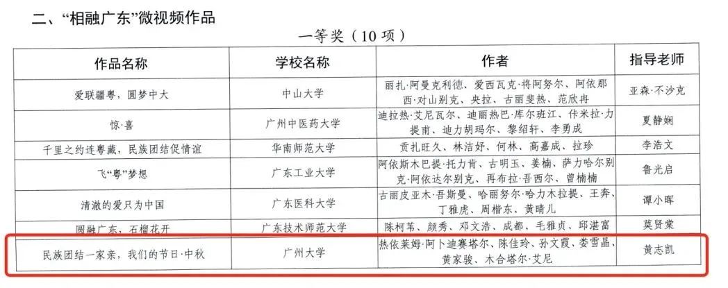 学子在“相融广东”微视频作品中共有2项获奖。现公布获奖名单如下: