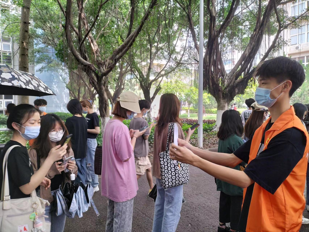 成立的学生党员突击队火速出击、不辞辛苦,协助完成全员核酸检测。党员志愿者们冲锋在校园防疫的前线,一次次地提醒扫码、督促健康打卡,直到最后一位同学完成检测。无不体现出党员志愿者的战斗力、凝聚力和向心力。彰显了新传学院党员志愿者的良好形象,用爱与担当为新传学子筑起一道防疫的屏障。