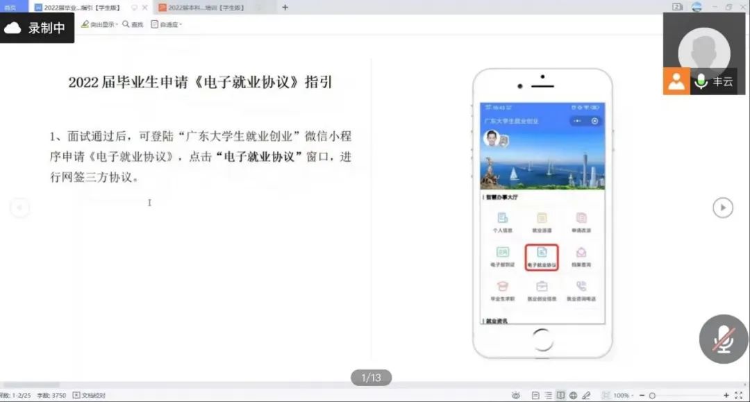 2022届本科毕业生辅导员谭丰云老师就毕业生去向落实类型、报考国家基层项目和地方基层项目等就业政策进行了宣讲,对毕业生申请电子就业协议的步骤以及常见问题,为毕业生做了就业信息填报指引。