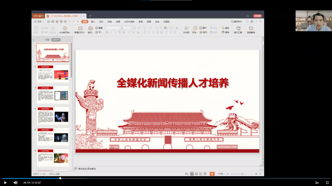 石磊教授分享的是全媒化新闻传播人才的培养,在新文科建设科技与人文的对立与协同、技术发展与价值重塑、百年变局与话语主导、论域拓展与交叉融合的背景之下,我们需要培养全媒化新闻传播人才,可以从以下几个方面进行努力:一、能力重塑,适应媒体深度融合和行业创新发展,二、价值引领,培养家国情怀与担当意识,三、完善培养体系,提升全媒化人才培养质量。在新的媒体环境下,以变应变,培养全媒化新闻传播人才。