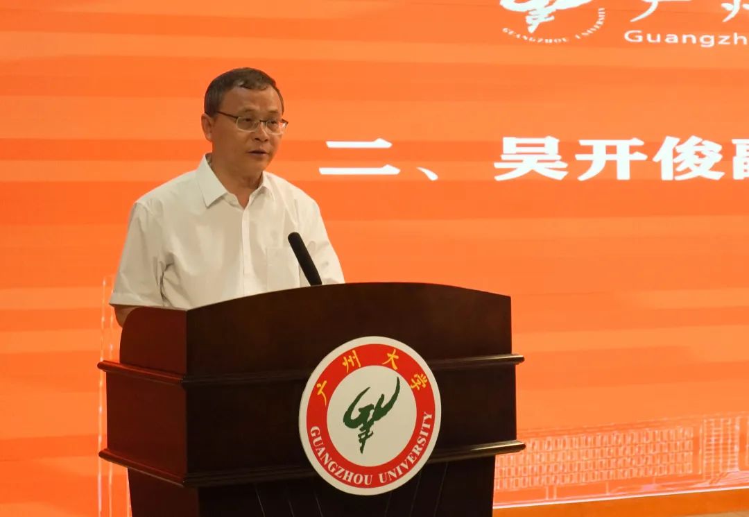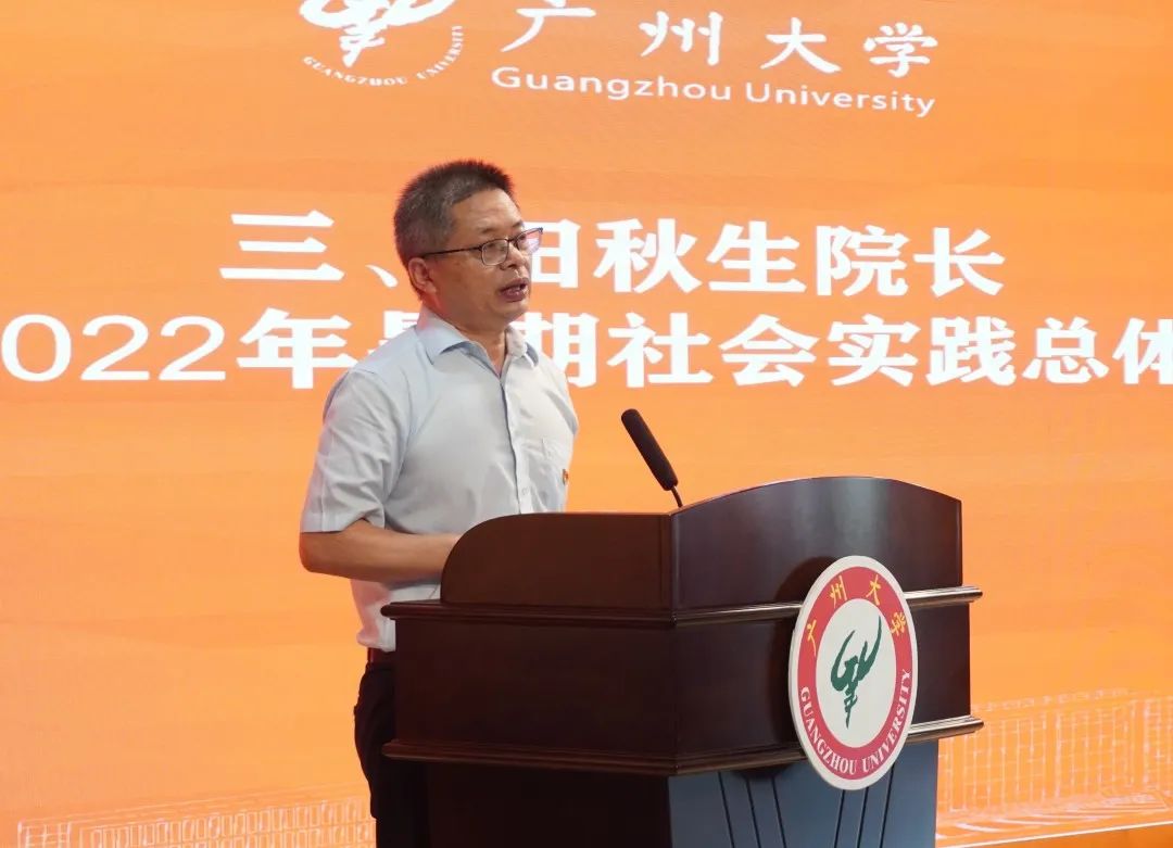 广州大学副校长吴开俊教授作了“读万卷书,行万里路”的主题致辞。他指出,过去四年学院师生紧扣时代主题,赴多地开展“走基层,懂国情,长本领”的社会实践活动,利用各种方式写出多篇“高质量,有温度,接地气”的报道,并且获得主流媒体刊载与国家级、省级、市级荣誉称号。他鼓励今年的各个团队要在社会实践中继续创作出优秀的作品。他提出三点期望:一是注意做好疫情防控,时刻把安全意识摆在第一位;二是践行新闻人的初心使命,在服务社会当中,提升“四力”,在不断提升经验的基础上围绕时代发展主题有所创新;三是要做到求真务实,在社会实践中受教育、长才干、做贡献,满载而归。