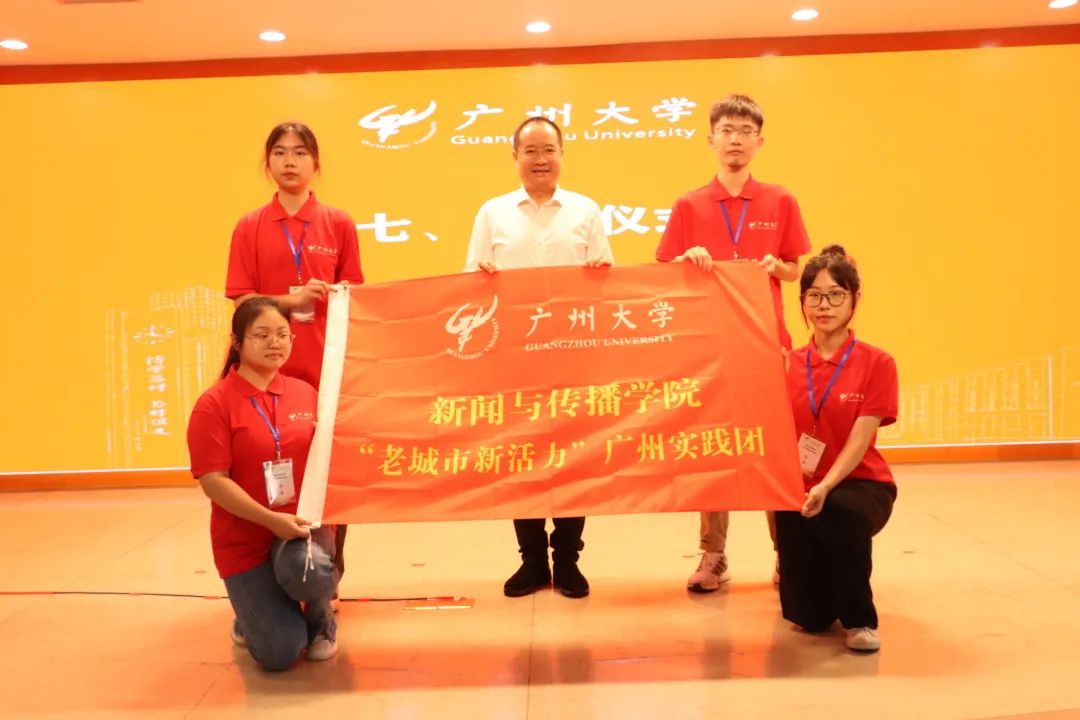 ▲广州市委宣传部副部长、市委网信办主任陆志强为“老城市新活力”广州实践团授旗