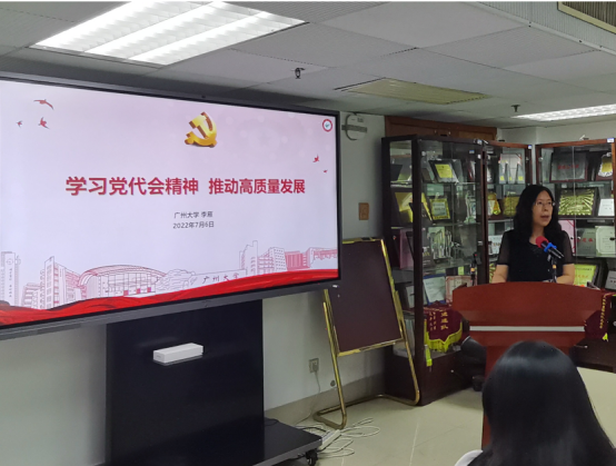 在党课上,李雁书记首先介绍了广东省第十三次党代会的重大意义,随后紧紧围绕省第十三次党代会报告的主线,过去五年广东各项事业取得的成就经验、未来五年广东的谋划展望等方面,系统、清晰地阐述了省第十三次党代会召开的重要意义和精神内涵,以及过去五年广东在政治、经济、文化、生态和民生等各项事业中取得的成就,用生动的案例、清晰的脉络展示今后广东五年总体要求、主要目标和主要任务部署。同时结合学校“十四五”规划,实施“1+2”高质量人才培养工程、推进“2+6+1”学科与科研创新平台建设及全力拓展高质量开放办学等工作,就学校党委推动党代会精神在学校落地生根,进行了深入解读。