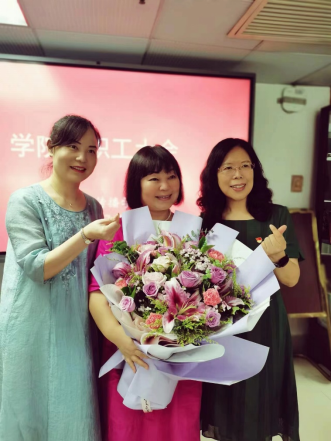 学院领导与郭秦老师合影(左起,张爱凤副院长、郭秦老师、李雁书记