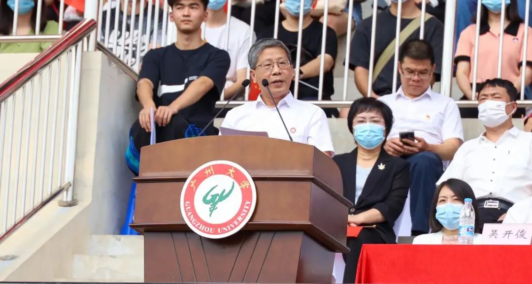伴随着初秋清晨的微风与鸟鸣,身着蓝绿色迷彩服的广大新生集结完毕。2022年9月5日上午,广州大学大学城校区2022级新生开学典礼暨军训动员大会在广州大学田径场举行。