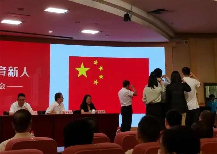 曹锐老师作为新入职教师代表上台参与这一环节。