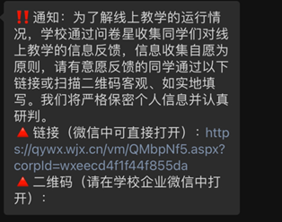 高度重视静态管理期间线上教学质量及效果。学校与学院多次通过调查问卷的方式,收集同学们的反馈信息,了解线上教学的运行情况,解决线上教学期间同学们遇到的难题。