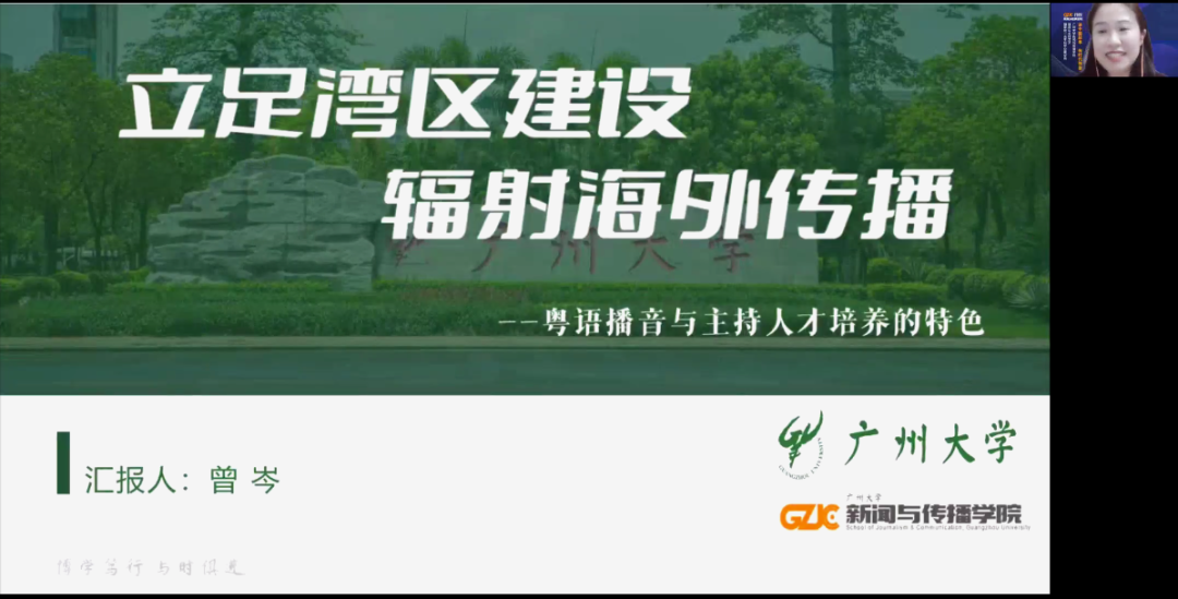 ▲粤语播音与主持方向骨干教师曾岑老师在汇报