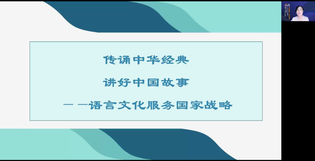 专业建设点负责人张爱凤教授首先做了“语言文化服务国家战略”的汇报。张爱凤教授聚焦社会主义文化强国建设、粤港澳大湾区建设、乡村振兴等国家战略目标,提出了“一专两翼 四轮驱动”的专业发展思路,就语言文化如何服务国家战略、语言文化服务国家战略的架构、语言文化服务国家战略的阶段性成果及未来规划进行了细致地汇报。