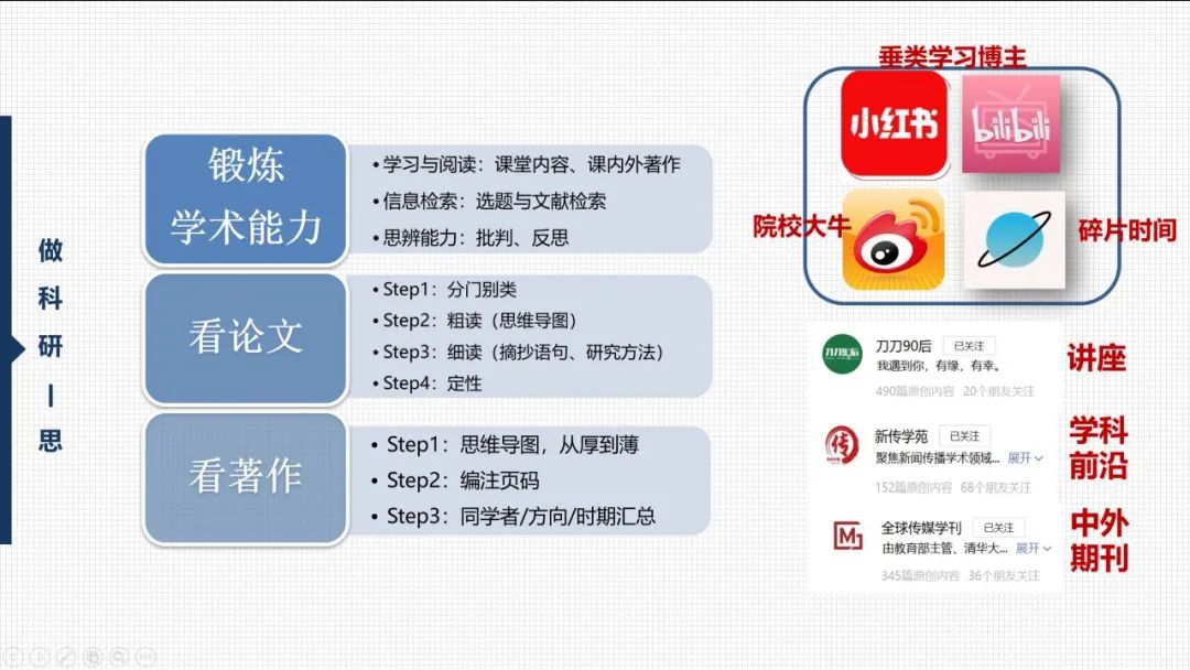 王映骅学姐还谈到了论文与科研。她认为首先要确定好主题和框架,要如何研究。写作时谨记分点阐述,及时回扣,做到用语专业,规范格式和图文并茂,完成后多花时间进行打磨,学会沉淀。进行论文写作与科研都需要大量的知识储备,学姐希望大家利用课余时间多阅读著作,回归原典。