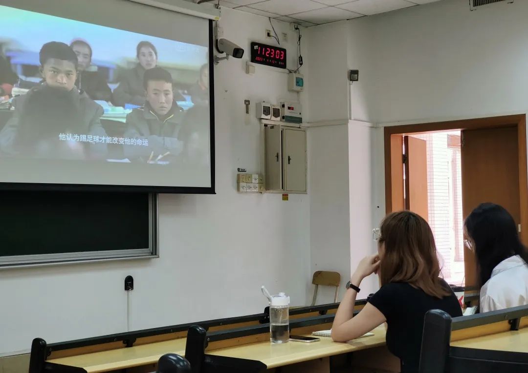 ▲同学们观看《云端上的足球梦》