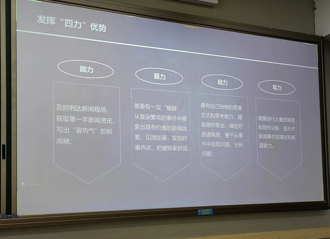 “不断增强脚力、眼力、脑力、笔力,努力打造一支政治过硬、本领高强、求实创新、能打胜仗的宣传思想工作队伍。”吴老师特别提及习近平总书记在全国宣传思想工作会议上所强调的“四力”。他表示,脚力是四力的基础。我们只有去到真实新闻现场,才能写出有温度和触摸感的文字,为文章注入更多的人文情感,也能够增强记者对于文字和真实感的热爱。