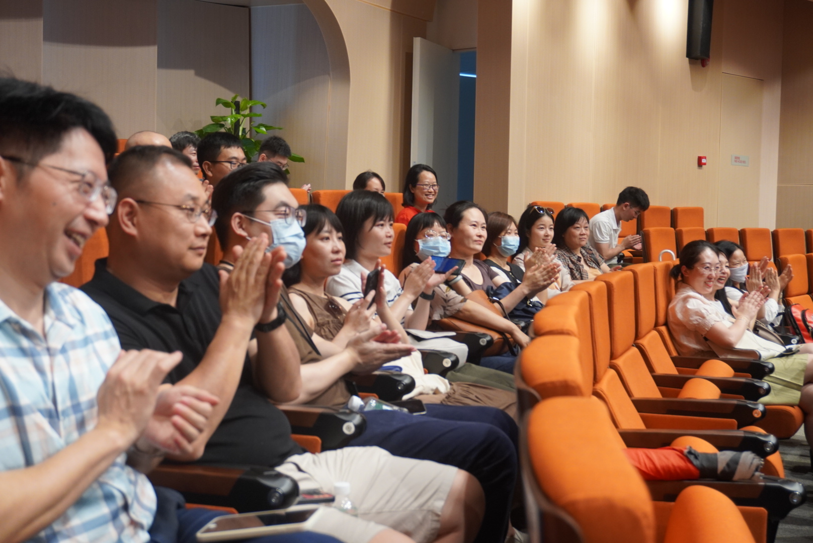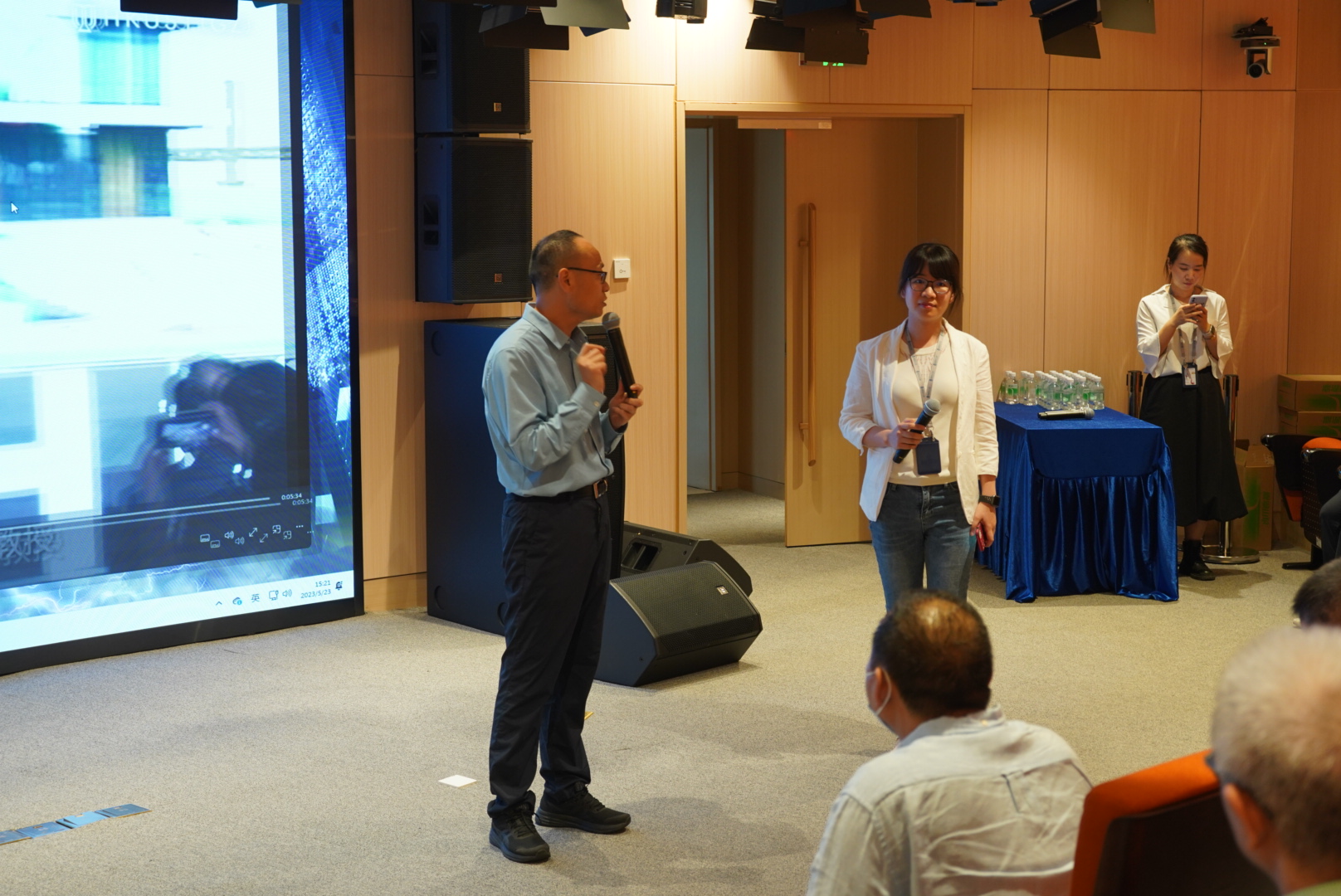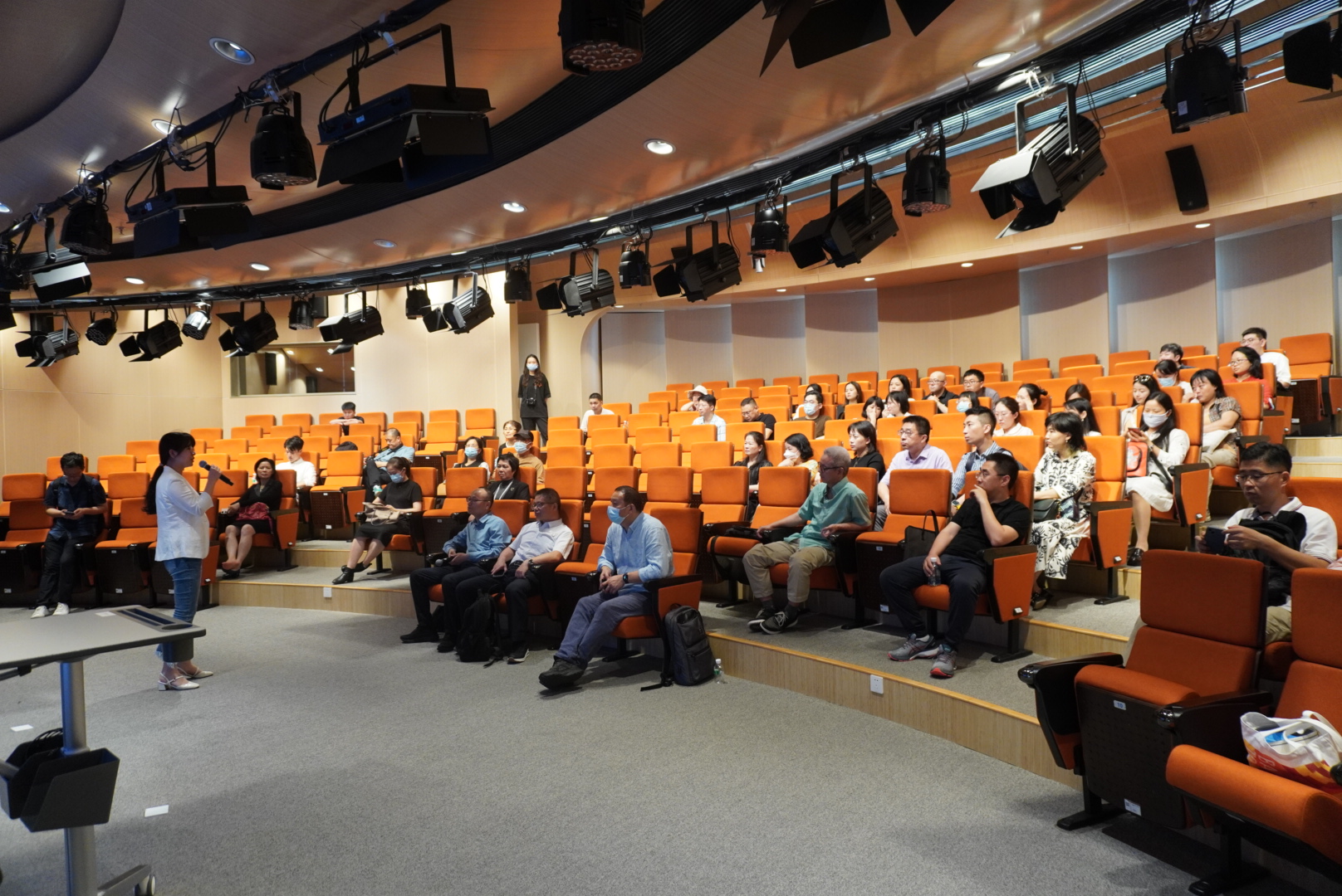 在演讲厅,大家观看了香港科技大学(广州)的宣传片。随后,香港科技大学(广州)未来技术学院的周晋妮博士为到访老师介绍了面向全体学生的《设计思维》课的情况,以及港科大在培养学生学科融合思维的先进做法,并与彩票网站
