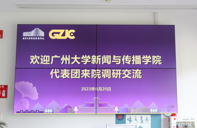 6月20日上午,调研团队一行乘坐南京大学安排的专车抵达南京大学新闻传播学院所在的紫金楼。南大新闻传播学院党委书记刘源、副书记季晓敏、学院办公室主任吴平在楼外热情迎候调研团队。