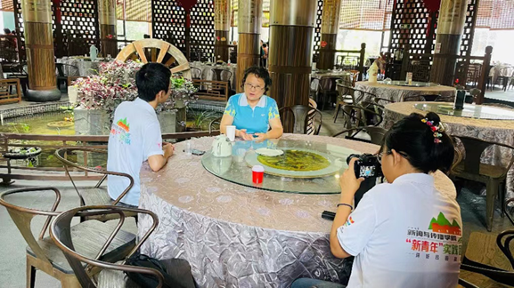 ▲“新青年”实践团成员采访莲麻小镇三元酒家赖经理