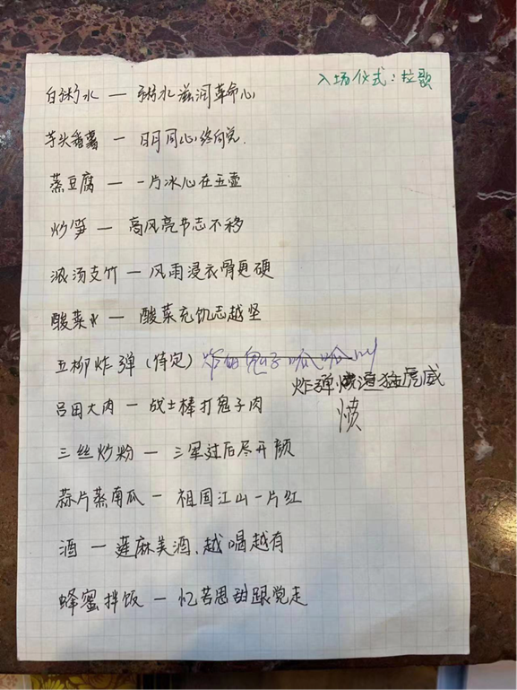 “高风亮节志不移”“风雨浸衣骨更硬”“酸菜充饥志更坚”等菜名,饱含着不可磨灭的红色精神。在味蕾的作用下,实践团被新民主主义革命时期中国共产党人钢铁般的意志所打动、所震撼。