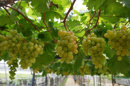 据悉,香蜜山葡萄园于1999年建立至今,经过20多年的种植和栽培,孕育出更适合南方气候生长的葡萄,更新换代达20多个品种,并自主研发与改良6大高品质葡萄品种。其中,香印青提是香蜜葡萄庄园自主研发改良的主打品种,肉质细腻多汁,有淡淡的玫瑰香。潘细爱介绍到:“香印青提我们是引进日本最好的一个品种,我们采用了限根的种植方式,还有绿色食品的验证,通过优质苗圃嫁接的方式,改良成为更适宜吕田气候的葡萄品种。”