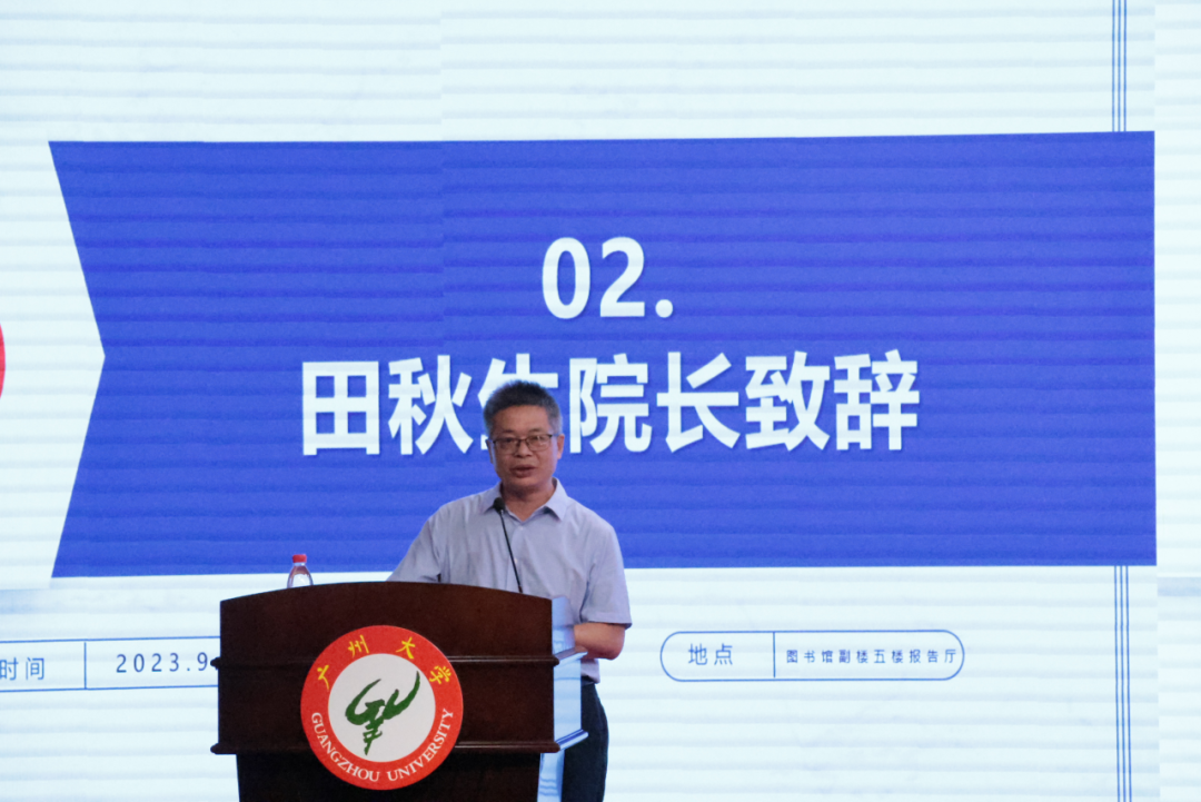 院长田秋生教授首先致辞。他从“城市”“大学”“学院”三个关键词分别展开,详细地为新生介绍了广州这座城市、广州大学的近况与成长以及彩票网站