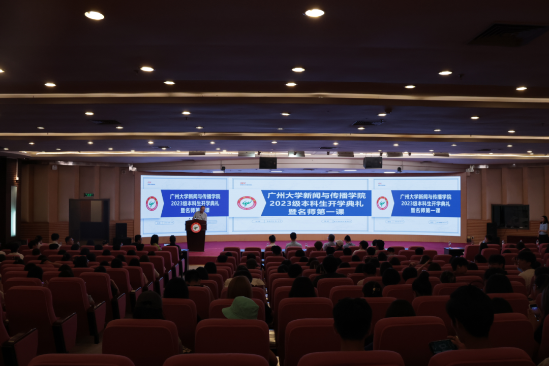 2023级本科生开学典礼暨“名师第一课”在图书馆副楼五楼报告厅隆重举行。全体学院领导、系主任、新生班主任、辅导员、导生和2023级本科新生一起出席了开学典礼,热烈欢迎来自世界各地的300多名新同学加入广大新传大家庭。开学典礼由学院党委书记邹军教授主持。