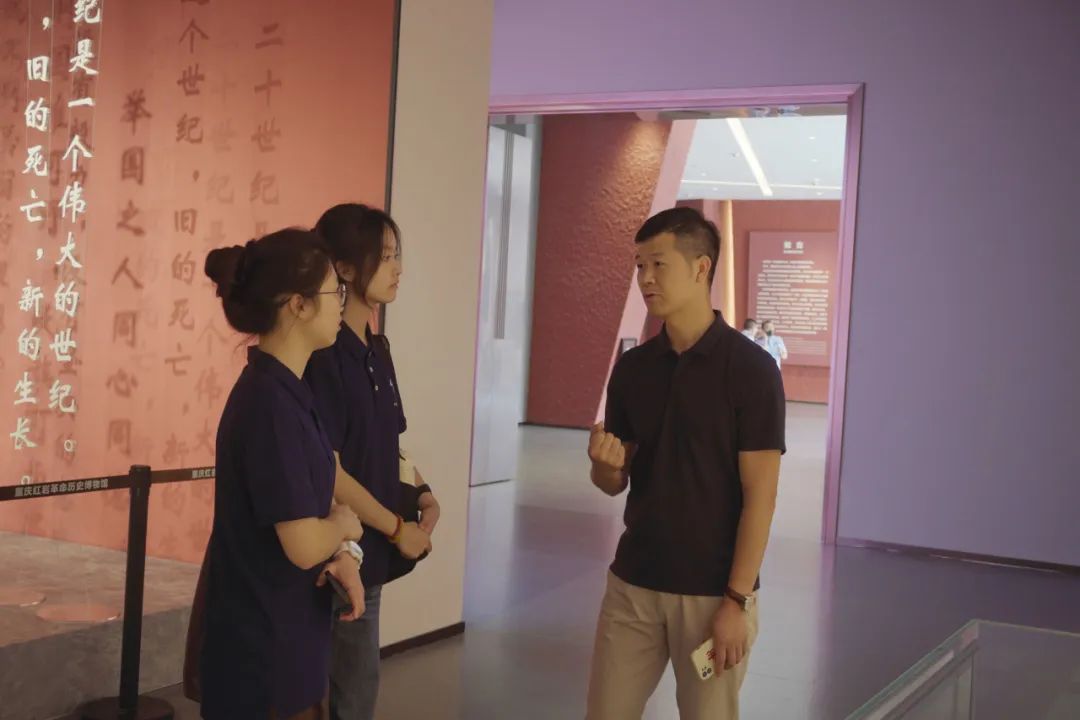 在参观歌乐山革命纪念馆时,访学团学生向方建平老师请教问题——“如何理解红岩”。方建平老师从红岩的地域特征,《红岩》小说,以及红岩精神等维度向同学们讲述自己对红岩的理解,并表达了对革命英烈崇高的敬意,“那一代人有他们的使命和选择,我们需要学习他们的精神,结合时代,做出我们这一代人的选择。”