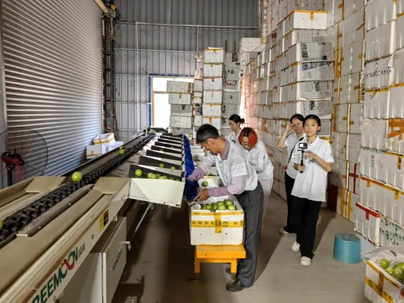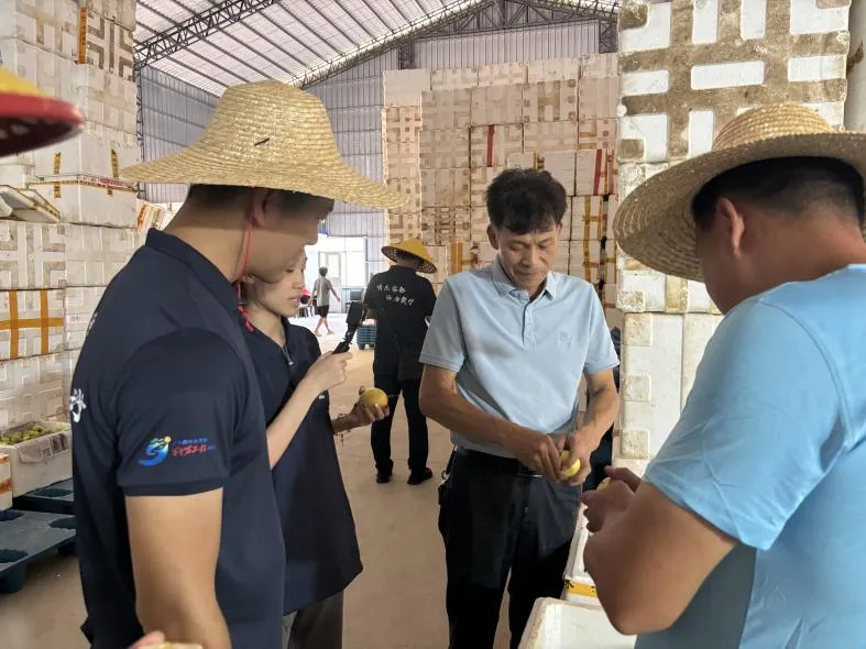 7月17日下午,实践团参观了百香果分拣中心。在这里,成员们目睹了百香果从田间采摘到市场供应的全过程,百香果分拣中心的工作人员向实践团展示了如何运用科技手段确保每一批产品的质量,给实践团成员们留下了深刻印象。“很先进,机器分拣完直接就能得出这一箱产品售卖的价格。筛选、分拣、包装等精细化流程全是机械化运作,”实践团成员叶欣怡说。