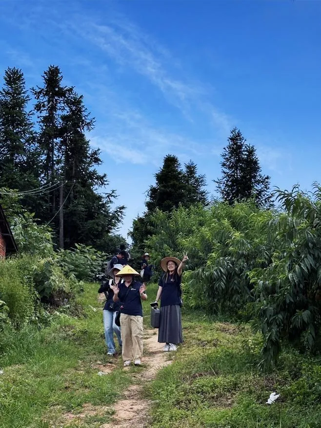 随后,实践团成员们来到黄沙村鹰嘴桃种植基地。据基地工作人员肖女士介绍,黄沙村的鹰嘴桃因其独特的口感和营养价值,深受消费者喜爱,已成为当地重要的经济作物之一。途中果园的工作人员还向实践团讲解了鹰嘴桃的生长周期和管理技巧,对于成员们提出的问题,也一一做了详尽解答。