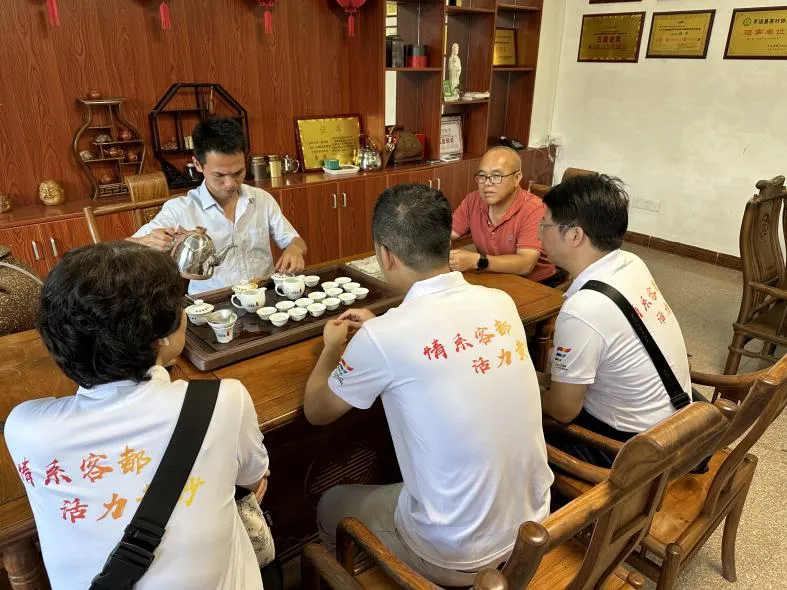 ▲梅州市威华御欣茗茶业有限公司吴经理向团队成员展示茶艺